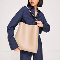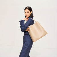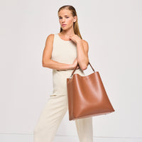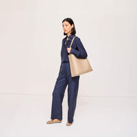 Please note, the shade of our tan Iris tote may vary depending on the light under which the product is under.
