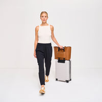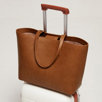 The Sienna Triple Compartment tote has the classic silhouette and intricate details of the Sienna tote with a couple of added extras for greater functionality, including a luggage sleeve and a 16” padded laptop compartment for those with larger devices. The compartmentalised interior of the Sienna Triple Compartment tote is lined with luxury suedette and includes separate pockets for chargers, mobile phones and notebooks to help organise your life and save time searching for buried belongings. The classic shape and generous volume of this modern durable design ensures it is as practical as it is stylish to complement your work, weekend and travel looks.